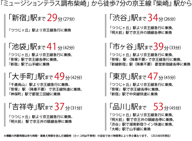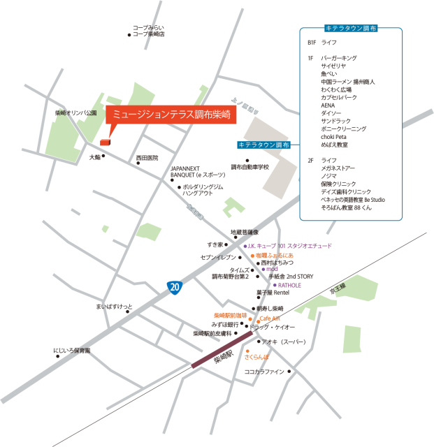 大型商業施設「キテラタウン調布」は、「ミュージションテラス調布柴崎」より徒歩9分のところにあり、日用品などのお買い物には便利な環境です。