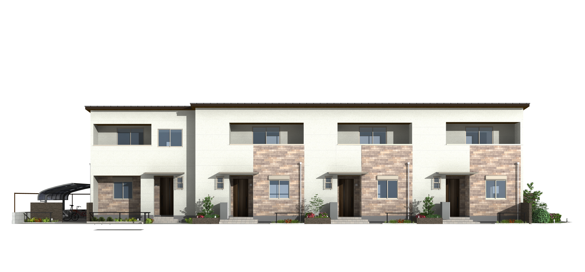住戸専有面積 | A号室(3LDK):75.57㎡ B号室(3LDK):75.57㎡ C号室(3LDK):75.57㎡ D号室(2LDK):64.77㎡ |