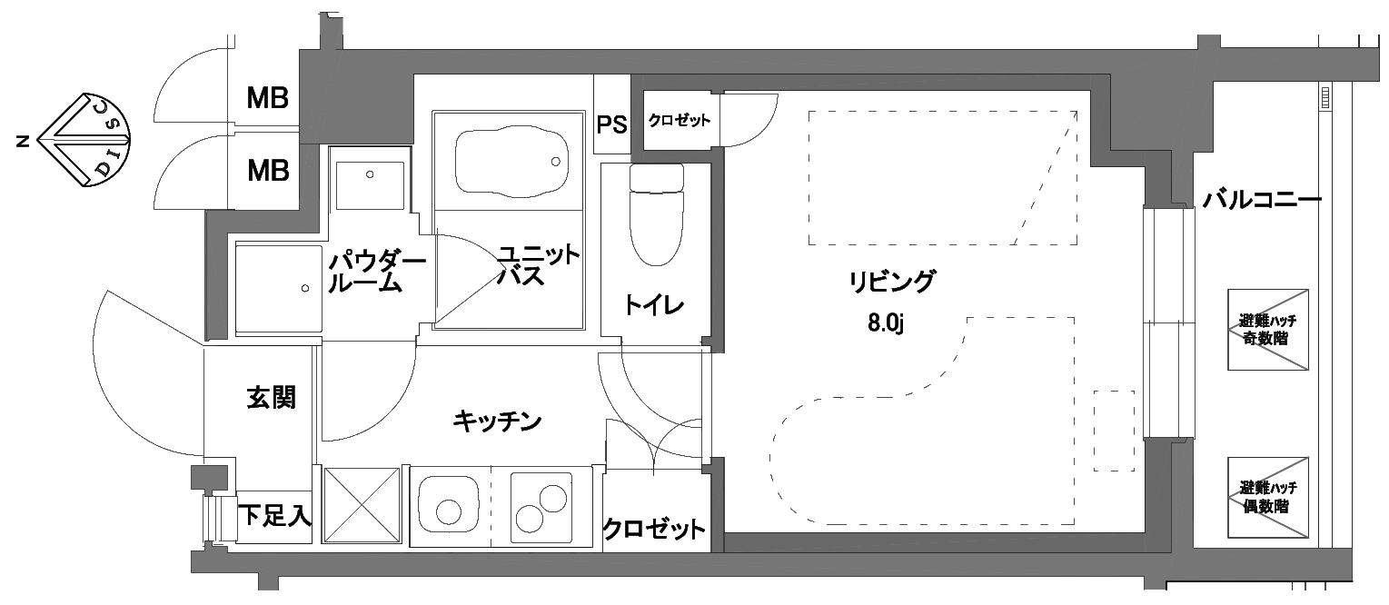 25.96㎡ / 1K / 南向き